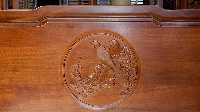 銘仁坊家具均為核桃木制作。核桃木,和道,木中君子,如玉溫潤,高古拙璞,內(nèi)斂含蓄,紋理若隱如現(xiàn),與微黃的顏色相匹配。