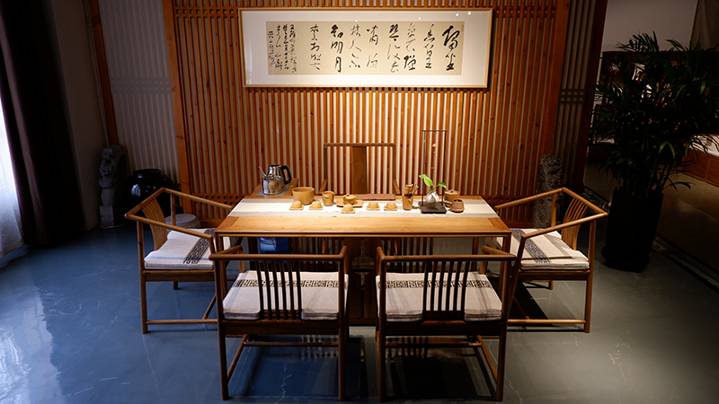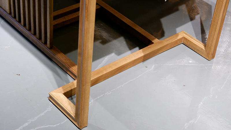 銘仁坊家具均為核桃木制作。核桃木,和道,木中君子,如玉溫潤,高古拙璞,內(nèi)斂含蓄,紋理若隱如現(xiàn),與微黃的顏色相匹配。